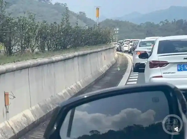 面对漫漫长路,有经验的旅客早已做好准备。网友“H”在社交媒体上晒出了自己的后备箱的“零食储备”,饮料和零食堆成小山,配文:“决战广龙高速!”网友调侃:“这是打算堵车时顺便开店是吧?”“H”表示,自己是从广东东莞回赣州,不到600公里耗时15小时,目前已经到家。不过,他“苦中作乐”点赞了沿途的部分高速服务,“路面放了指示标牌,称应急车道可以开放通行,允许借道,隧道内也不限速,稍微给回家的漫漫归途提了一点速。”