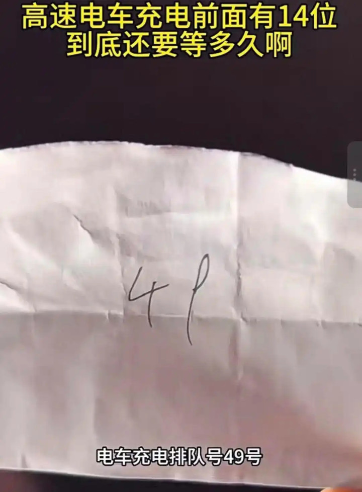 有网友反映,高速服务区充电桩开始排队叫号(视频截图)