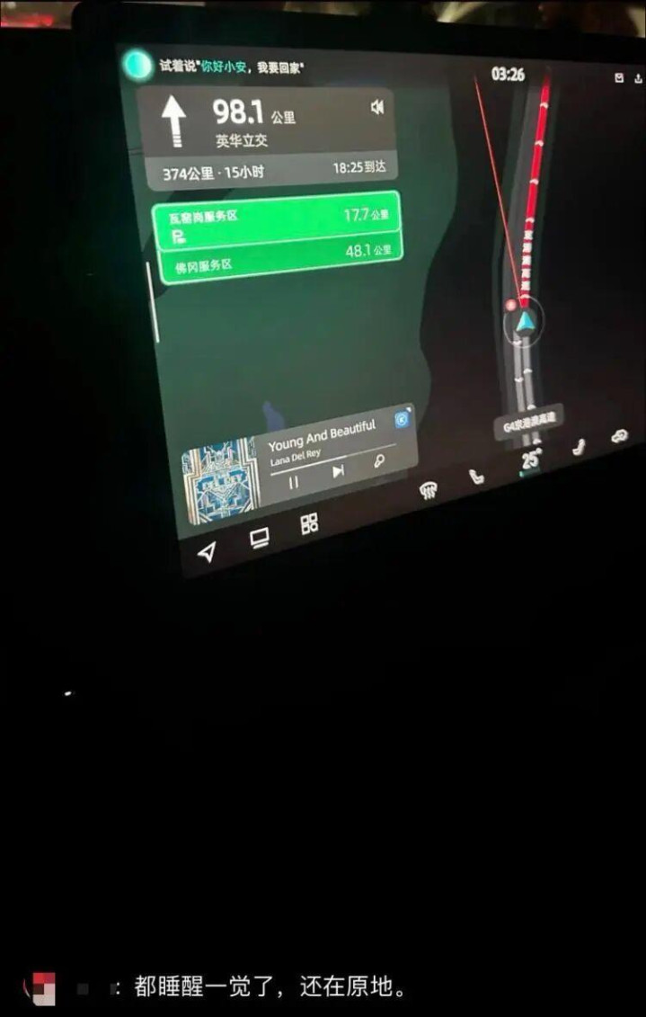 黄卡拉记得,车辆在凌晨3点左右行驶到G4京港澳高速英华立交附近时,车主们居然非常有默契地熄火睡觉了。“那里没有网络,又堵,还只有双车道。5点多我醒来时,车辆仍在原地纹丝未动。”更令人哭笑不得的是,一路途经的两个服务区都临时封闭,无法上厕所,“一家人从早上5点多醒来,一直憋到早上9点,才在第三个服务区解决了问题。”